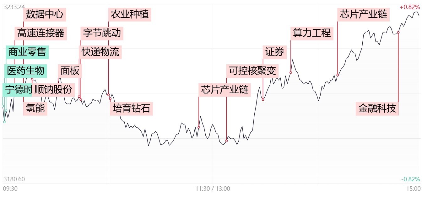 AI产业链股爆发,数据中心概念领涨,华塑科技、中恒电气、麦格米特、动力源等多股涨停。可控核聚变概念崛起,海陆重工、永鼎股份、东方钽业等多股涨停。
